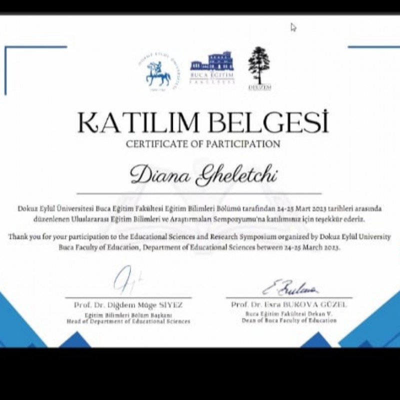 Parcursul proiectului eTwinning continuă. Participarea în cadrul Simpozionului Științific organizat de Universitatea Dokuz Eylul Universitesi Buca Egitim din orașul Izmir, Turcia cu prezentarea proiectului nostru internațional "The Happiness project - be active be inclusive", împreună cu fondatoarea proiectului Asiye Kert, Borusan Asim Kocabuiyik Teknik Lisesi, Istanbul, co-fondator Gheletchi Diana, Școala Profesională Nr 1, mun. Cahul, au fost prezentate obiectivele cât și rezultate obținute în implementarea activităților din cadrul proiectului.