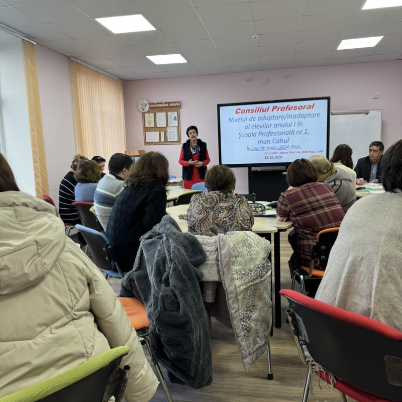Adaptarea e cheia succesului în orice etapă a vieții, iar școala e locul unde încep marile transformări, deoarece fiecare elev are propriul ritm, potențial și victorii. Azi, 13.12.24, în instituție s-a desfășurat Consiliul Profesoral cu tema " Nivelul de adaptare școlară al elevilor anului I în Școala Profesională nr.1 mun.Cahul" , moderat de psihologul Miron Marcela. Despre importanța conștientizării factorilor, a componentelor, a indicatorilor și condițiilor adaptării școlare, dar și despre riscurile inadaptării școlare a relatat psihologul școlar în cadrul Consiliului Profesoral. Mulțumim cadrelor didactice pentru eforturile constante în facilitarea adaptării școlare a elevilor anului I. Prin munca Dvs creați un mediu sigur și încurajator, în care elevii pot învăța, se pot dezvolta își pot descoperi și valoriza potențialul.