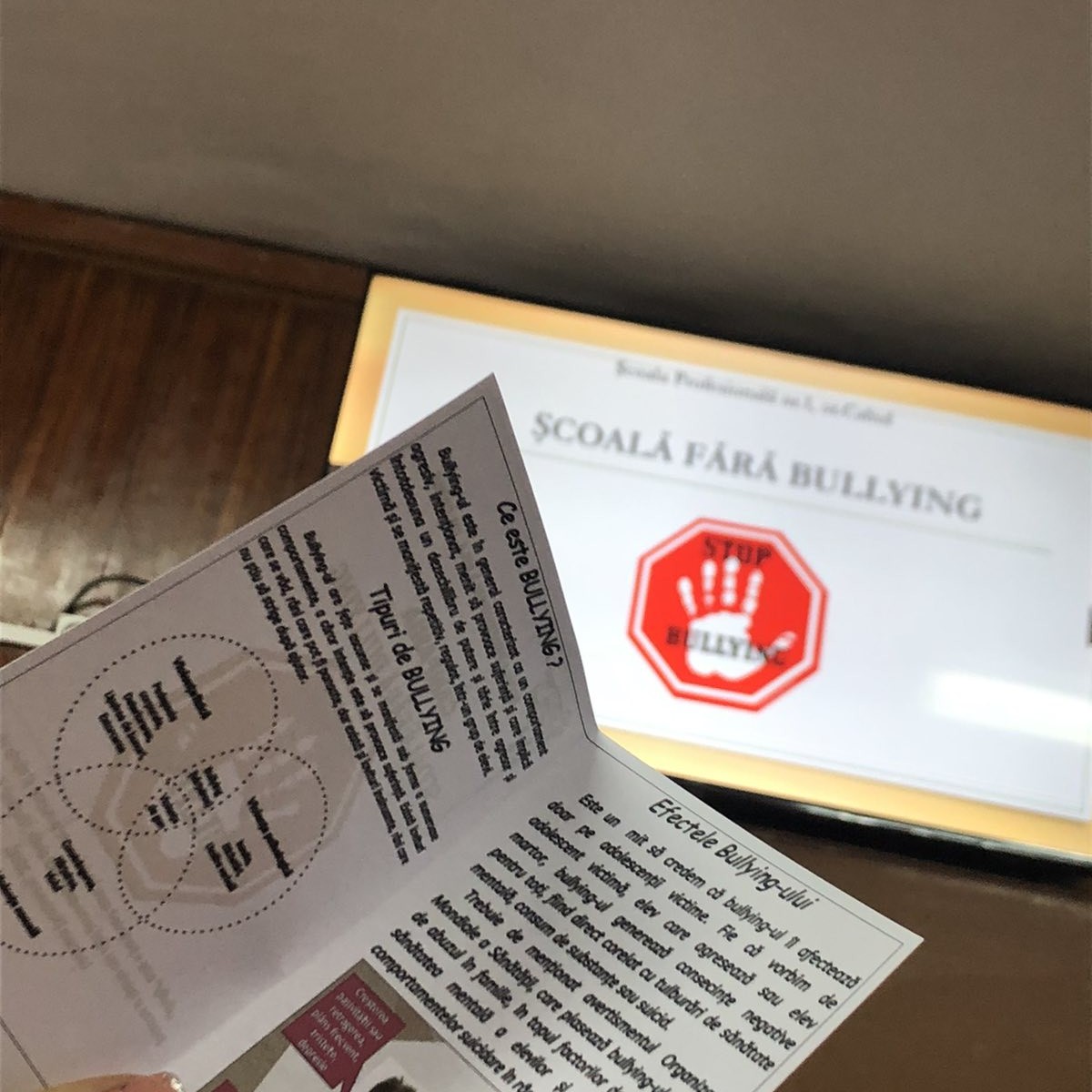 În perioada 25.01.21-29.01.21 în Școala Profesionala nr.1, or Cahul se desfășoară Campania de prevenire a Bullying-ului cu tema "Școală fără Bullying " , eveniment realizat în cadrul Proiectului e-Twinning "LET'S DO MORE TO KNOW MORE" ( SĂ FACEM MAI MULTE CA SA STIM MAI MULTE " ) În cadrul Campaniei se desfășoară ore de dirigenție ,vor fi distribuite pliante ,toate având drept scop conștientizarea factorilor și a caracteristicilor fenomenului tachinarii /intimidarii intre adolescenți și identificarea strategiilor de prevenire.