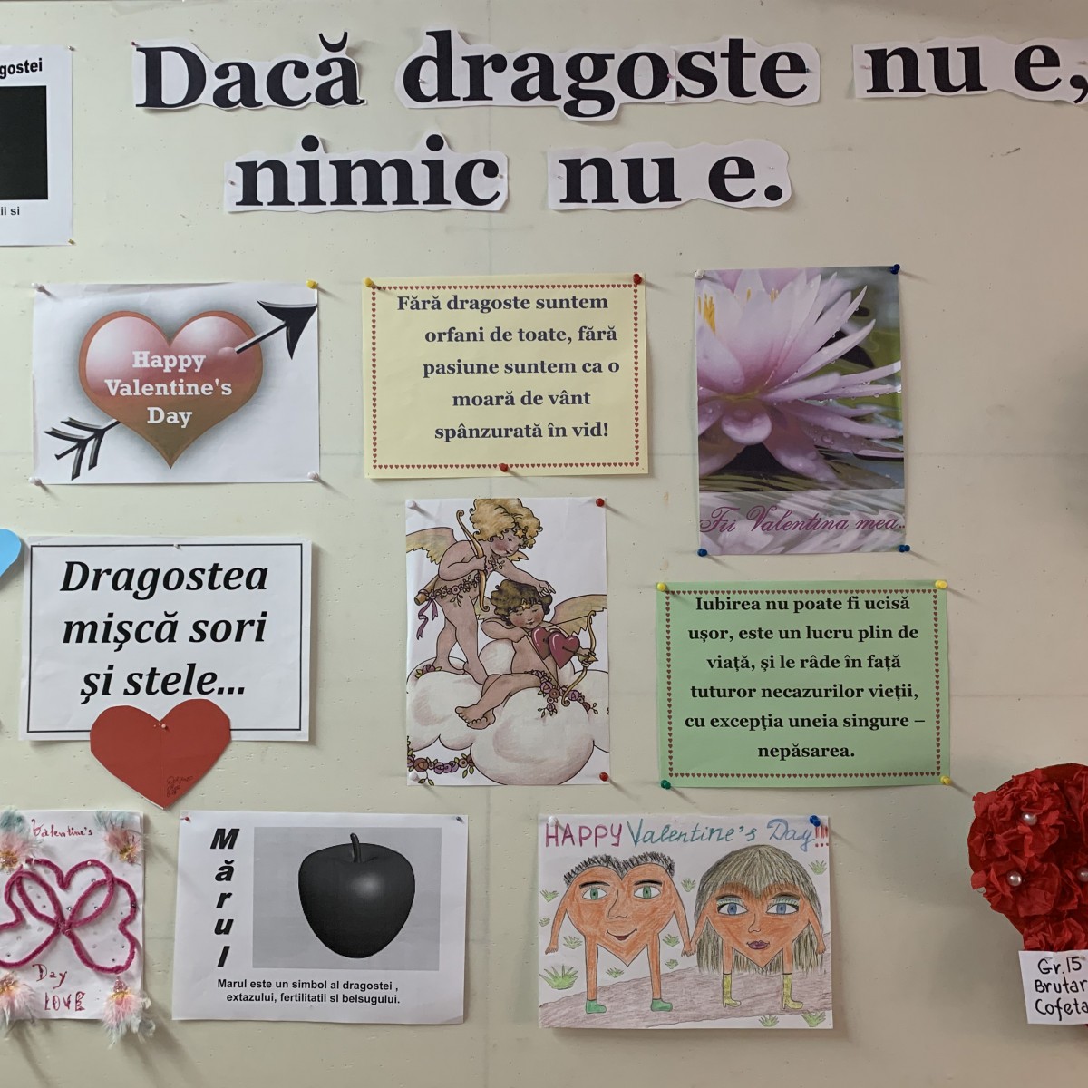 E februarie. E luna lui Faur! Luna Îndrăgostiților – Valentine’s Day – 14 februarie / Dragobetele – 24 februarie. “ Iubirea nu va pieri niciodată”, spune Biblia. Sunt multe motive ca să sărbatorim. Deaceea am invitat colectivul de elevi la un frumos concurs în cadrul Proiectului Educațional, având ca obiectiv manifestarea mândriei și respectului pentru adevăratele valori ale neamului, tradiții strămoșești: 1. Cea mai tandră și gingașă inimă (Quiling) 2. Cea mai originală declarație de dragoste (Acrostih) 3. Cea mai deosebită pereche de îndrăgostiți (Consiliul elevilor) 4. Cea mai frumoasă poezie de dragoste (Moment poetic) De la 01.02 pâna la 15.02.2021 elevii s-au implicat și au participat activ la confecționarea de inimioare. În incinta bibliotecii instituției, pe 13.02.2021, în cadrul activității extrașcolare: ” Gr. Vieru - „Poetul Golgotei Basarabene”, moderatori: Chiricuța Anna, prof. de limba și literatura română și Marineac Zinaida, bibliotecara, s-au recitat și ne-au mângâiat sufletele cu cele mai frumoase poezii și cântece despre iubire din creația vieriană și alți scriitori români și universali. Sub egida motto-ului: „ Dacă dragoste nu e , nimic nu e” s-au făcut auzite declarații de dragoste și au fost menționate 8 perechi de îndrăgostiți din Școala Profesională nr.1, Cahul. ”Să oferim dragoste aproapelui, spune Colnic Felicia, eleva gr.22, meseria OSTC – OÎVPD, așa cum soarele ne încălzește pe toți la fel.”