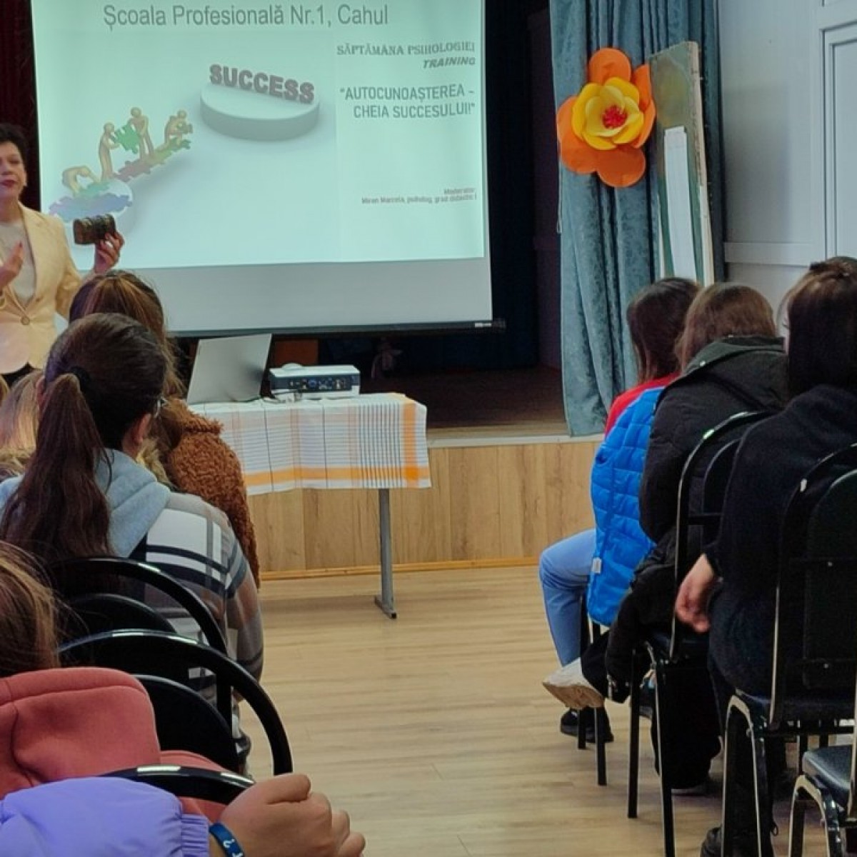 Pe 14.11 elevii anului I au participat la training- ul "Autocunoașterea- cheia succesului ", unde și-au dezvoltat competențe de autocunoaștere și dezvoltare personală,tehnici de gestionare a emoțiilor.