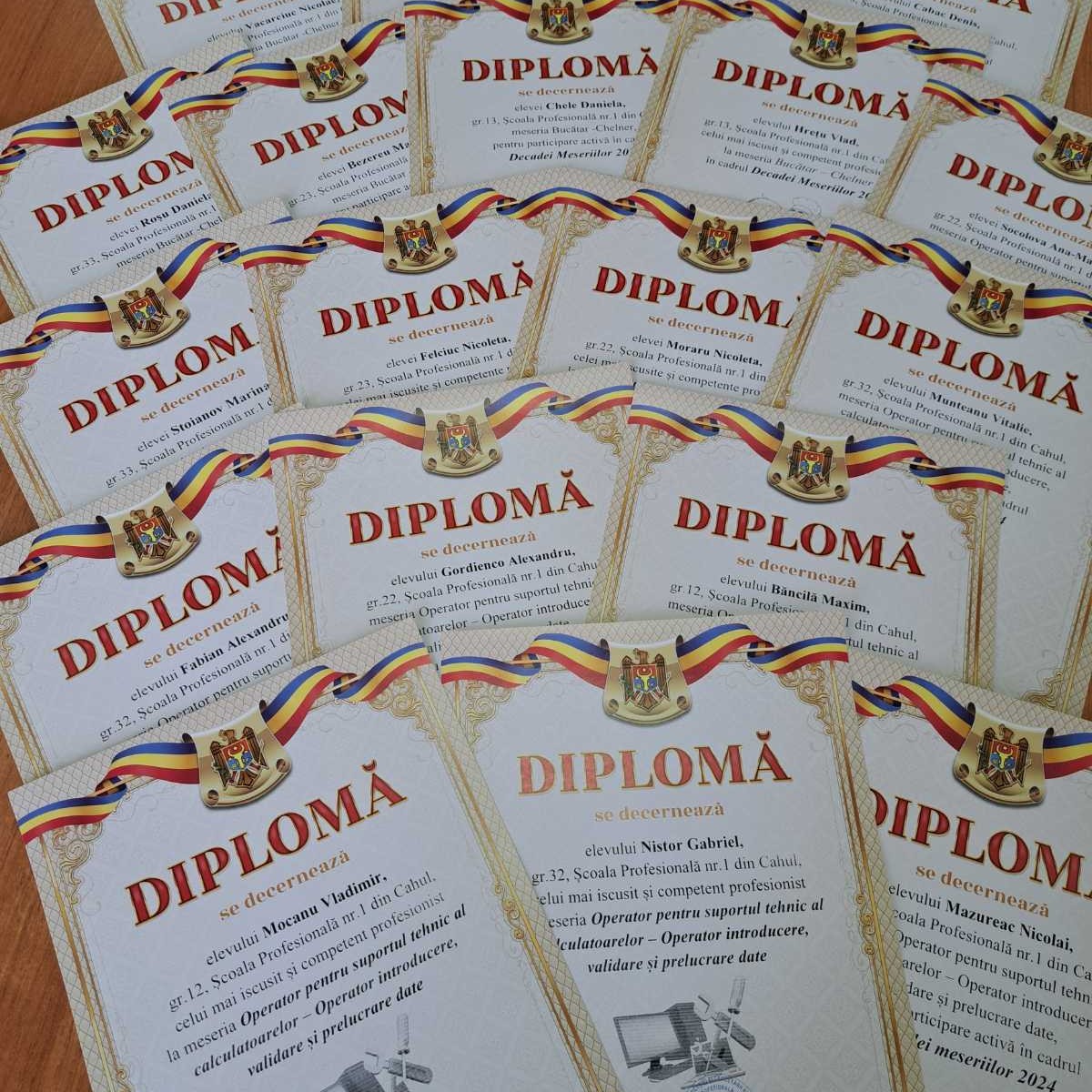 "Plăcerea meseriei duce la perfecțiunea muncii" Aristotel Am trăit emoții pozitive, pline de mesaje semnificative cu impactul așteptat pe tot parcursul desfășurării Decadei Meseriilor 2024, realizată în perioada 12.02- 27.02.2024 în Școala Profesională nr1 Cahul. La Careul școlar au fost decernate Diplome de merit și de participare celor mai iscusiți și competenți profesioniști la meseriile: "OSTC-OIVPD"- Anul I(gr.12)- Mocanu Vladimir, anul 2(gr.22)- Moraru Nicoleta,anul 3(gr.32) -Nistor Gabriel. "Bucătar- Chelner": Anul 1( gr.13) Hrețu Vlad, anul2( gr.23)Felciuc Nicoleta, Anul 3( gr.33) Stoianov Marina. "Brutar-Cofetar": Anul 1( gr.15) Mititelu Nadejda, anul2 ( gr.25) Căldare Adriana, anul3 ( gr.35) Șestacov Iulia. "Bucătar": Anul1( gr.16) Voina Adriana, Anul 2( gr.26)Andeev Andreia), "Frizer" Anul1 ( gr.18) Petroae Cristina, Anul 2 ( gr.28) Suhaițchi Elena. "CPA-OLIA": Anul3 ( gr.31). Bratu Alexandra. Pentru promovarea meseriei prin intermediul Gazetelor de perete s- au decernat Diplome: Gradul 1- grupa 13 Gradul 2- grupa 25 Gradul 3- grupa 26, 28. Diplome de merit s- au decernat și cadrelor didactice, ce au contribuit la buna organizare a Decadei Meseriilor. Fiecare zi a fost o oportunitate de a demonstra talente, determinare, profesionalism, încredere în sine și pasiune pentru meseria aleasă! Felicitări tuturor participanților pentru efortul depus, pentru dedicare și creativitate! Recunoștință pentru angajamentul dvs, pentru perfecționarea permanentă a abilităților și promovarea imaginii instituției prin implicare și devotament! Link website www.sp1cahul.md Facebook @ȘcoalaProfesionalănr1Cahul