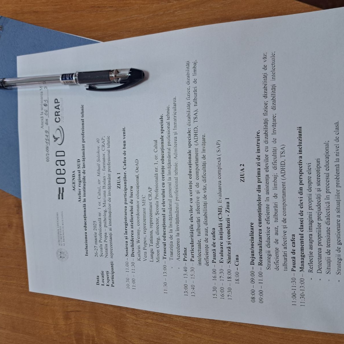 Școala Profesională nr.1 din Cahul găzduiește timp de 2 zile (26,27.03.2025) - Atelierul Regional Sud cu genericul "Incluziunea educațională în instituțiile de Învățământ Profesional Tehnic", organizat cu suportul Ministerului Educației și Cercetării, OEAD, CRAP.