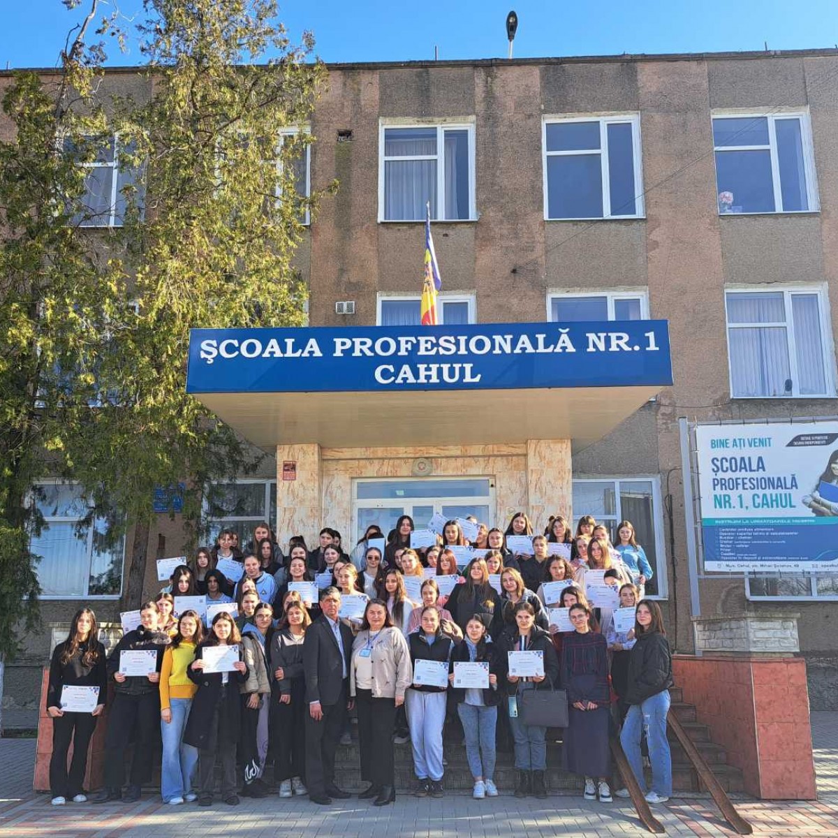 TÂRGUL DE CARIERE, eveniment desfășurat astăzi, 12.03.2026, în Școala Profesională nr.1 din Cahul în parteneriat cu Career Up Empowering Girls, proiect implementat în instituție pe parcursul anului de studii 2025- 2026. Evenimentul TÂRGUL DE CARIERE a fost dedicat conectării dintre angajatori și elevii absolvenți, pregătiți să-și înceapă parcursul profesional. Absolvenții au interacționat cu potențialii angajatori și au discutat oportunități reale de angajare. Surpriza evenimentului a fost TOMBOLA cu 25 premii valoroase: boxe portabile Xiaomi , căști fără fir, brățări fitness, Power bank, Certificate LIBRARIUS( în valoare de 300 lei), stick-uri de memorie, rucsac pentru laptop și multe altele. Ceremonia de înmânare a Certificatelor de participare elevilor activi din cadrul proiectului și pauza de cafea au fost momente placute de discuții și socializare într-o atmosferă relaxată. Mulțumim mult proiectului Career Up- Empowering Girls pentru oportunitatea valoroasă care a creat o punte reală între absolvenții noștri și mediul economic, or aceasta e cheia dezvoltării durabile.